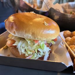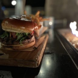 Our friends and I were debating on what to eat for lunch and we settled on this cool burger joint in the heart of Big Bear Village! And we came out extremely satisfied :) First, you may think parking is a challenge but realistically its not really. Yes there is street parking on the road its on, but that's where it may be hard to snag a spot. However if you go to the next street over which basically takes you behind thw joint, there's a public parking lot that's free with plenty of spaces. From that lot, you can also cut through some of the side alleys so that way you don't have to walk all the way around. So realistically its not bad at all. The place itself is nice and clean and has plenty of seating. There's an outdoor patio in the front and back and indoor seating with a few seats at the bar as well. The decor was awesome, they had a beer dispenser through an amp. That was pretty cool. Service was great. We were greeted the second we walked in and seated right away.The staff was polite and profesaional and I think they did a great job at explaining things on the menu. A bonus, they offer military discount. My only if is that we got our appetizer after we got our burgers. Food was really good. All of our burgers were nice and juicy. Good sized too. The fig jam and aioli was really good and added lots of flavor to the burgers. The Jalapeno Wontons were really good too. Had a good kick to it. I enjoyed it all! I highly recommend this spot if you're in Big Bear! Its a fun spot to bring family and friends for some good food! Give them a try :)