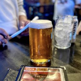 The service at Fire Rock is top-notch, with attentive staff ready to accommodate large groups. Whether you're visiting for lunch, dinner, or happy hour, you can expect a great dining experience. The themed decor, complete with a beer dispenser through an amp, adds to the overall ambiance of the restaurant.
